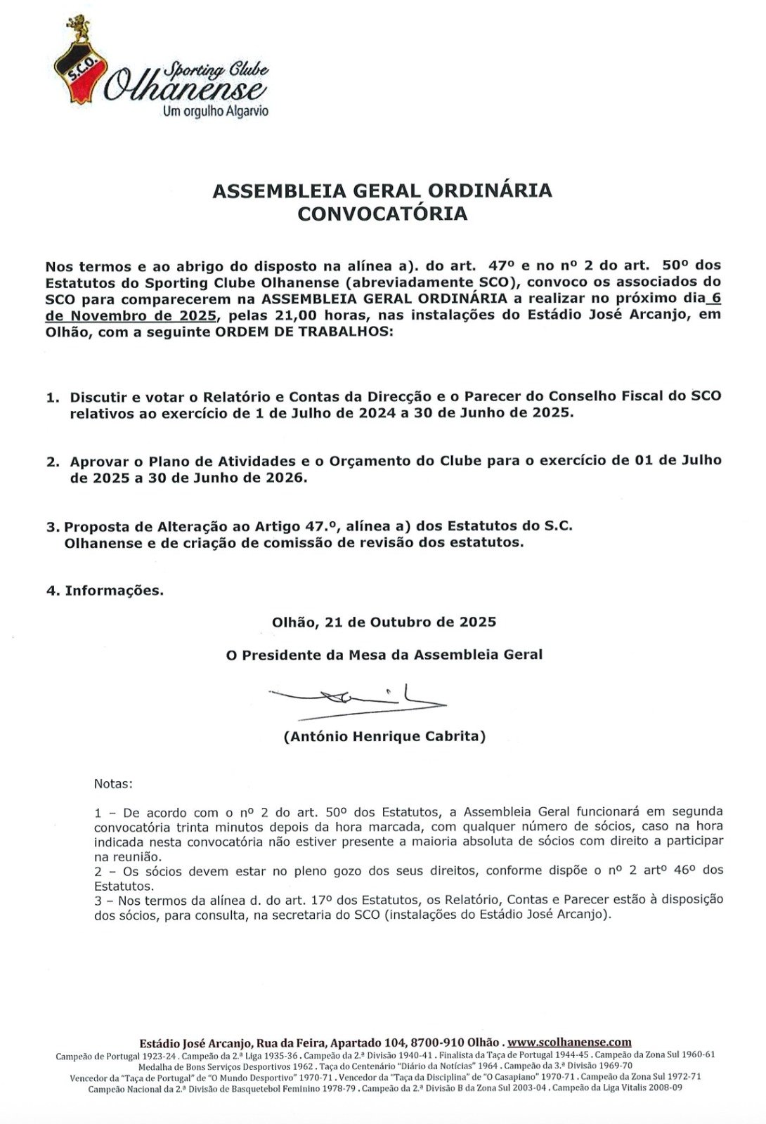 Convocatória – Assembleia Geral Ordinária 5 de Novembro, 2025 Navegação de artigos Anterior Leonor Colucas novamente na Seleção Nacional de sub15Próximo Próximo jogo: Armacenenses no José Arcanjo