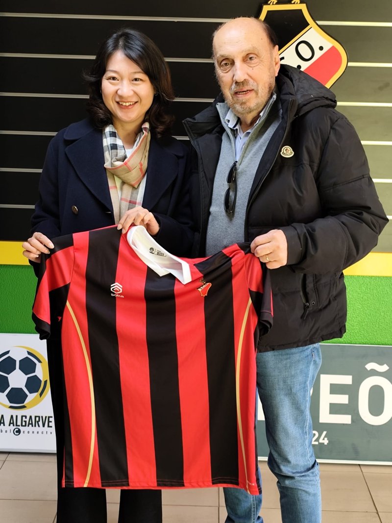 No âmbito da consolidação desta relação institucional, tivemos recentemente a honra de receber a Senhora Ding Jie, presidente do Olhanense Star. Após uma visita detalhada às nossas instalações, que lhe permitiu conhecer de perto a realidade e a história do Clube, o momento foi registado numa fotografia ao lado do presidente Manuel Cajuda, que lhe ofereceu simbolicamente uma camisola do Olhanense, gesto que reforça os laços de amizade e cooperação entre as duas entidades.