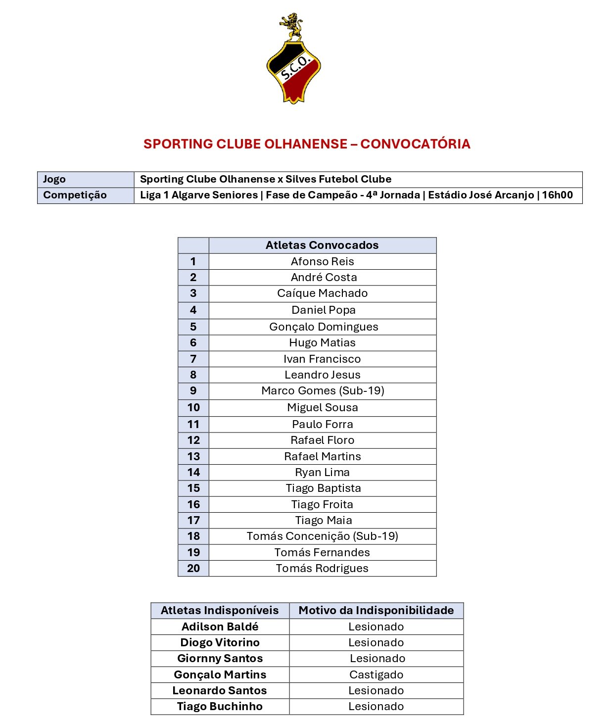 Convocatória dos Séniores – 4.ª jornada da 2.ª Fase 17 de Abril, 2026 Navegação de artigos Anterior Próximo jogo em casa – 18 de abril de 2026