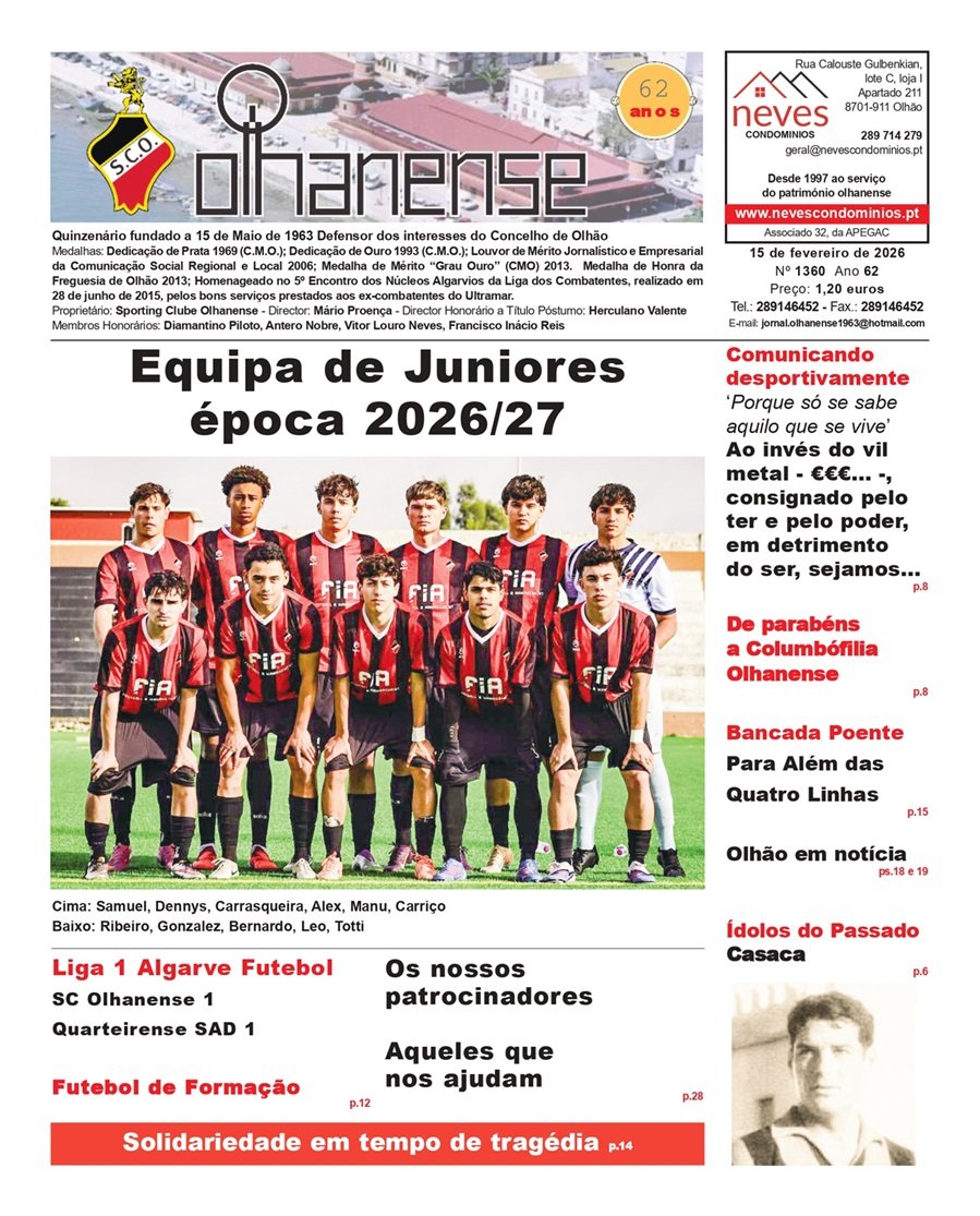 Jornal O OLHANENSE (15/02/2026) 16 de Fevereiro, 2026 Navegação de artigos Anterior Resultados da Formação – 14 e 15 de fevereiro de 2026